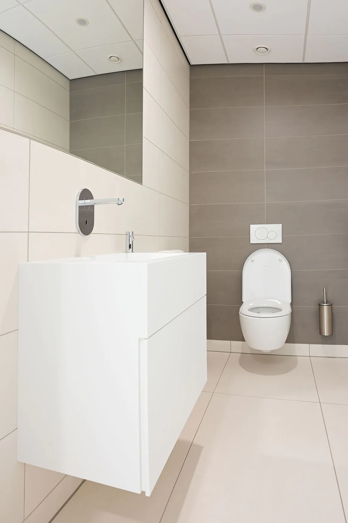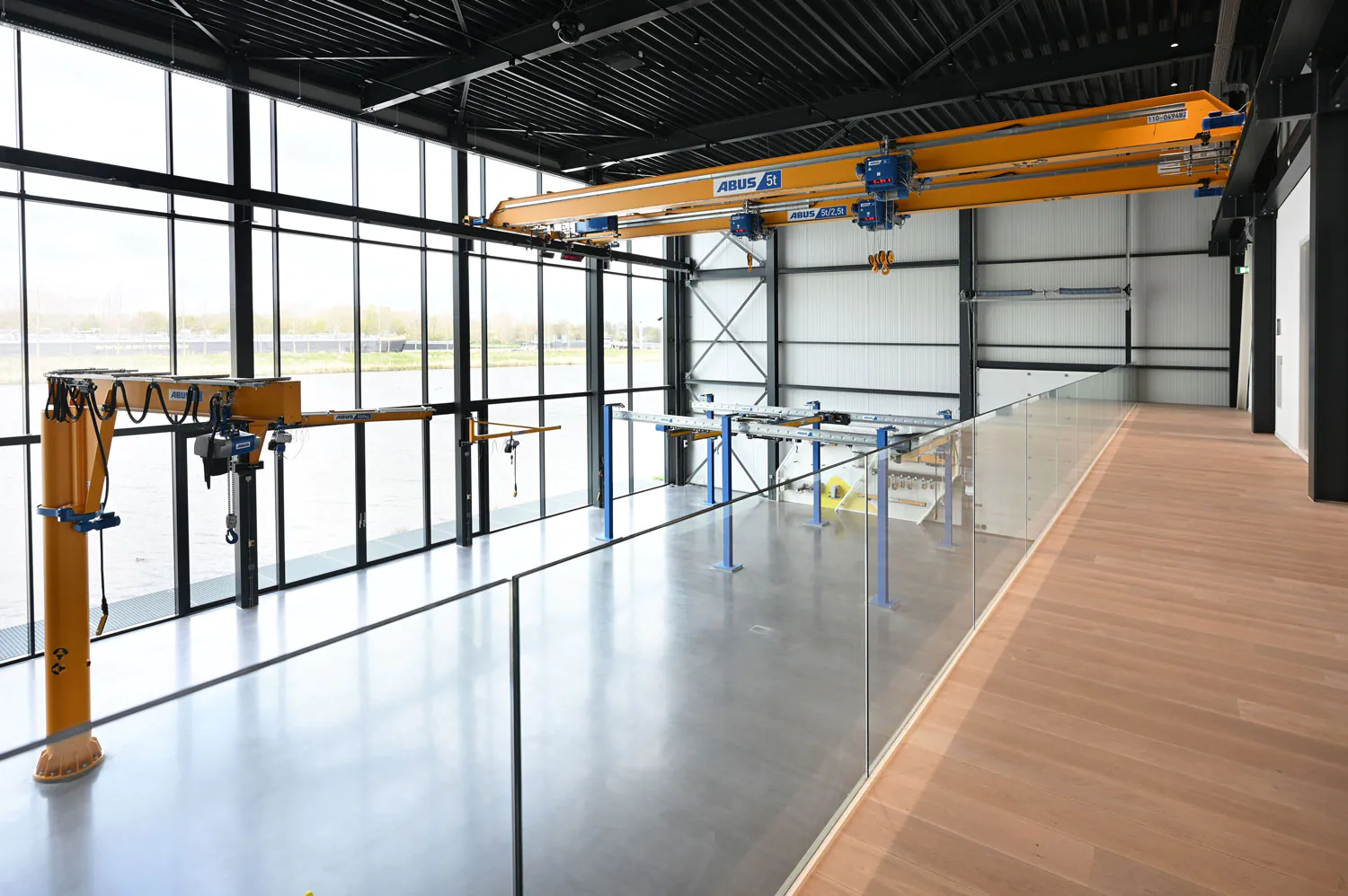 Imponerend is de nieuwe locatie van ABUS zeker te noemen, niet alleen van buiten maar ook van binnen. Het is een professionele omgeving waar het goed werken en leren is. Ondanks de diversiteit van functies is er een samenhangend geheel ontstaan door de terugkerende materialen en kleuren. Het ontwerp van 2doubleyou uit Veenendaal is sober en functioneel met veel aandacht voor mooie details. ABUS kraansystemen Nederland is klaar voor de toekomst.