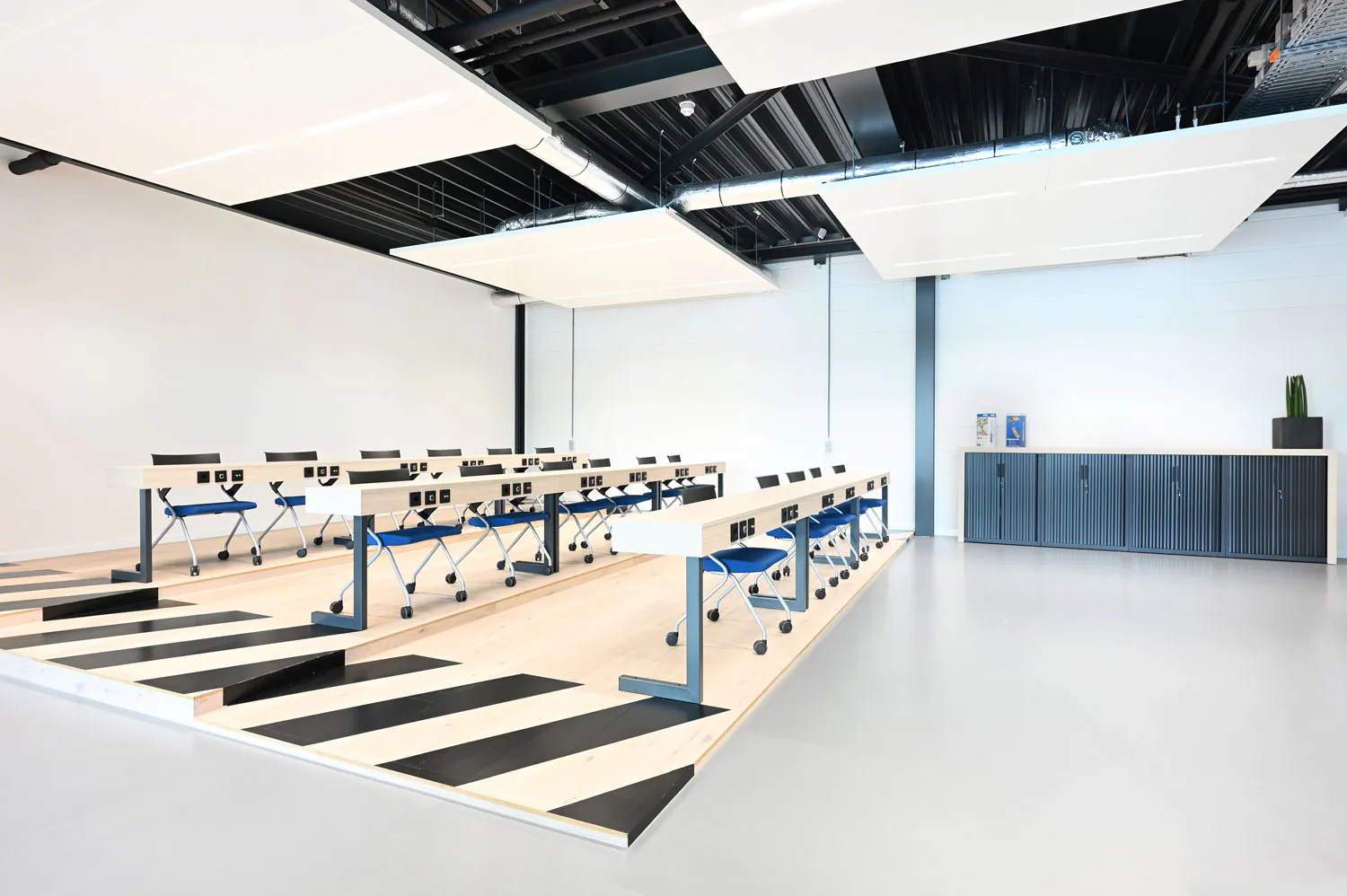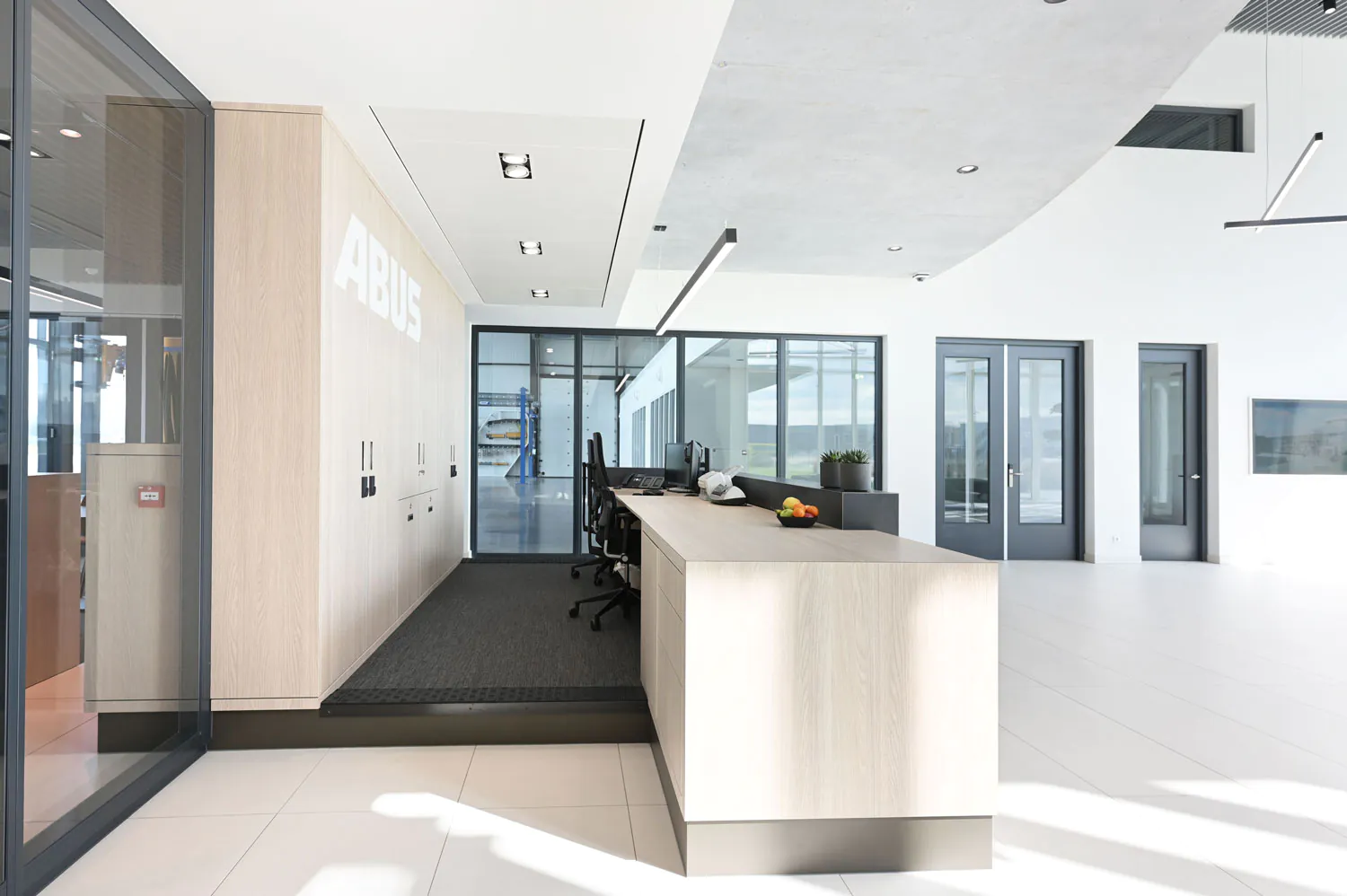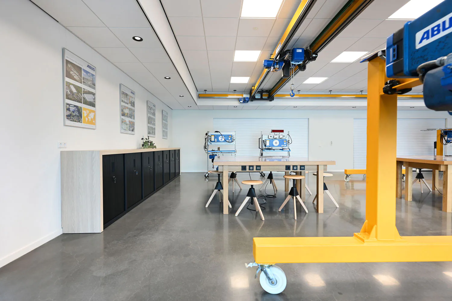 ABUS Kraansystemen is een vooraanstaande Europese halkranenbouwer. Voor het nieuwe kantoor met eigen opleidingscentrum in Nieuwegein heeft Hubbers interieurmakers het vaste meubilair gerealiseerd.