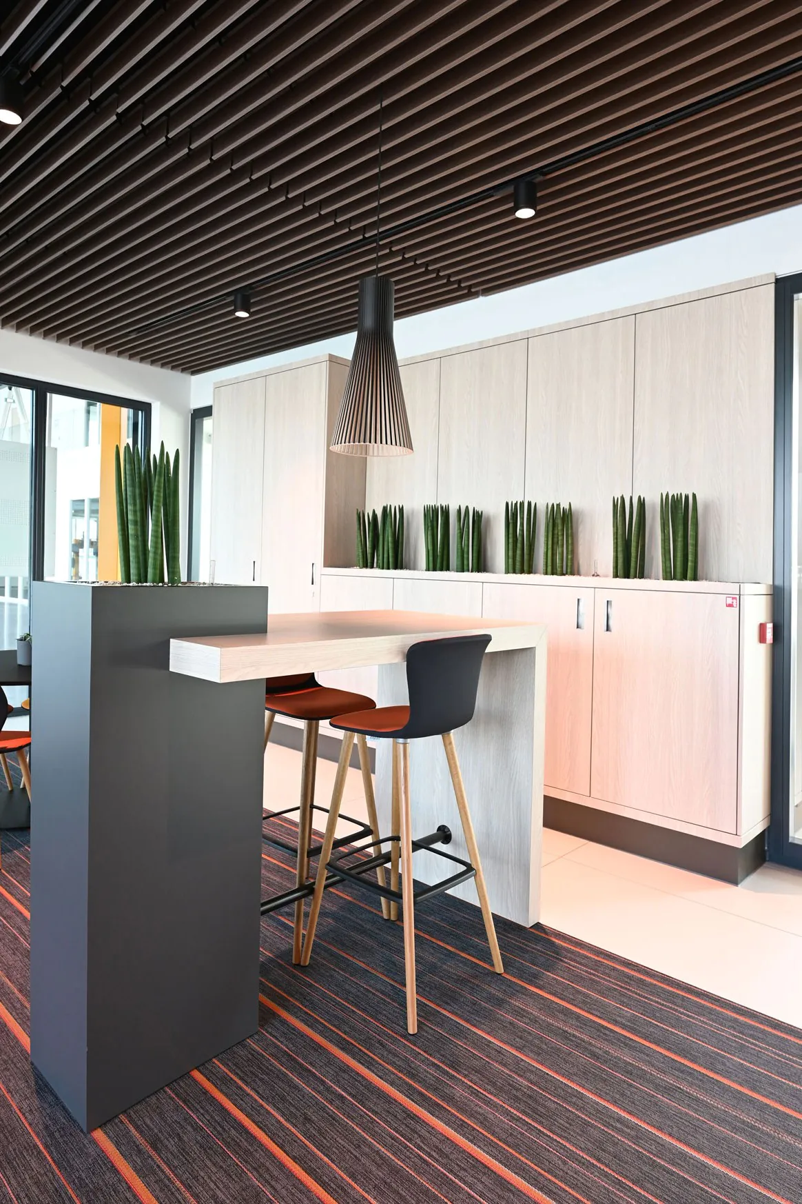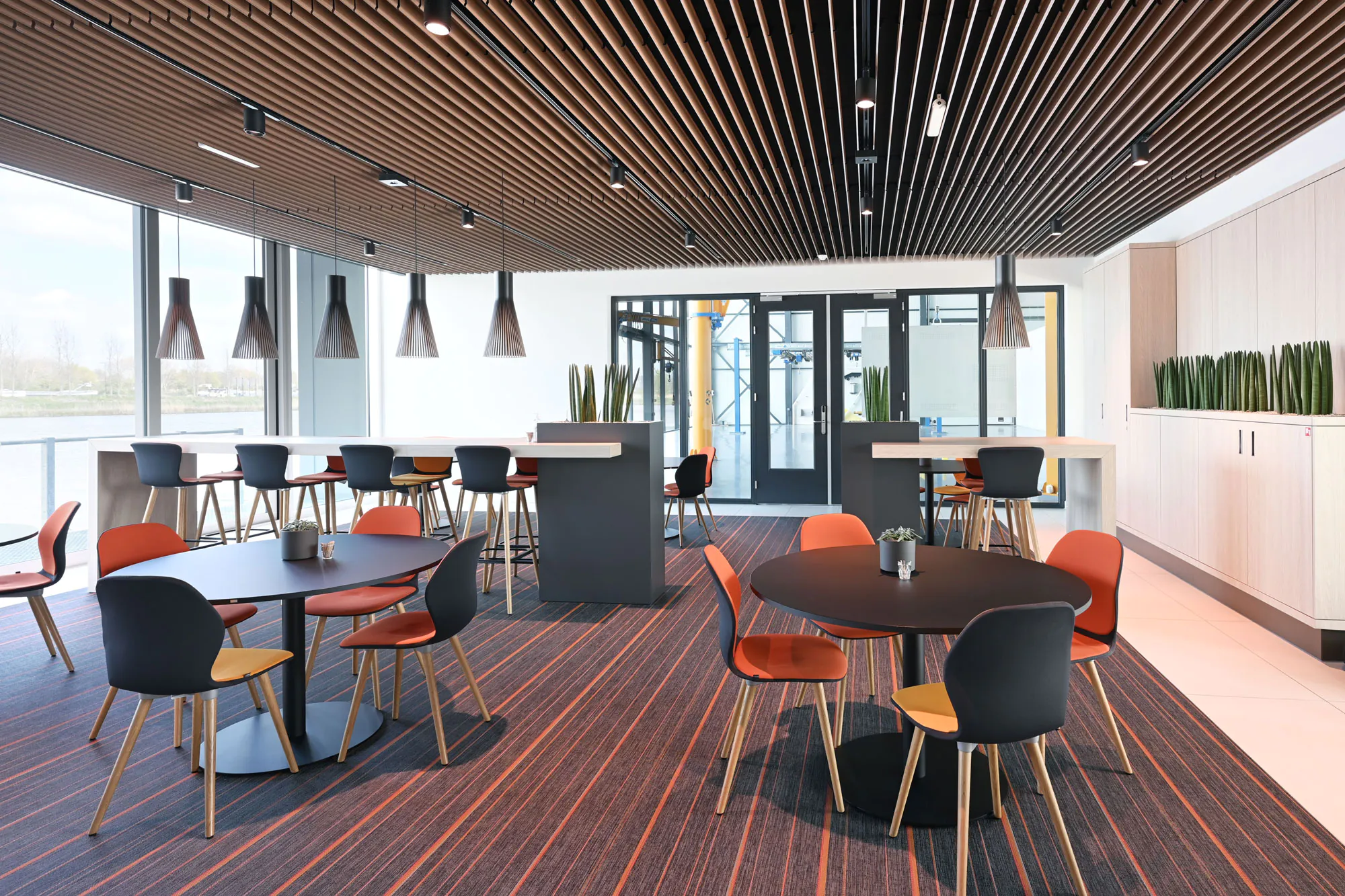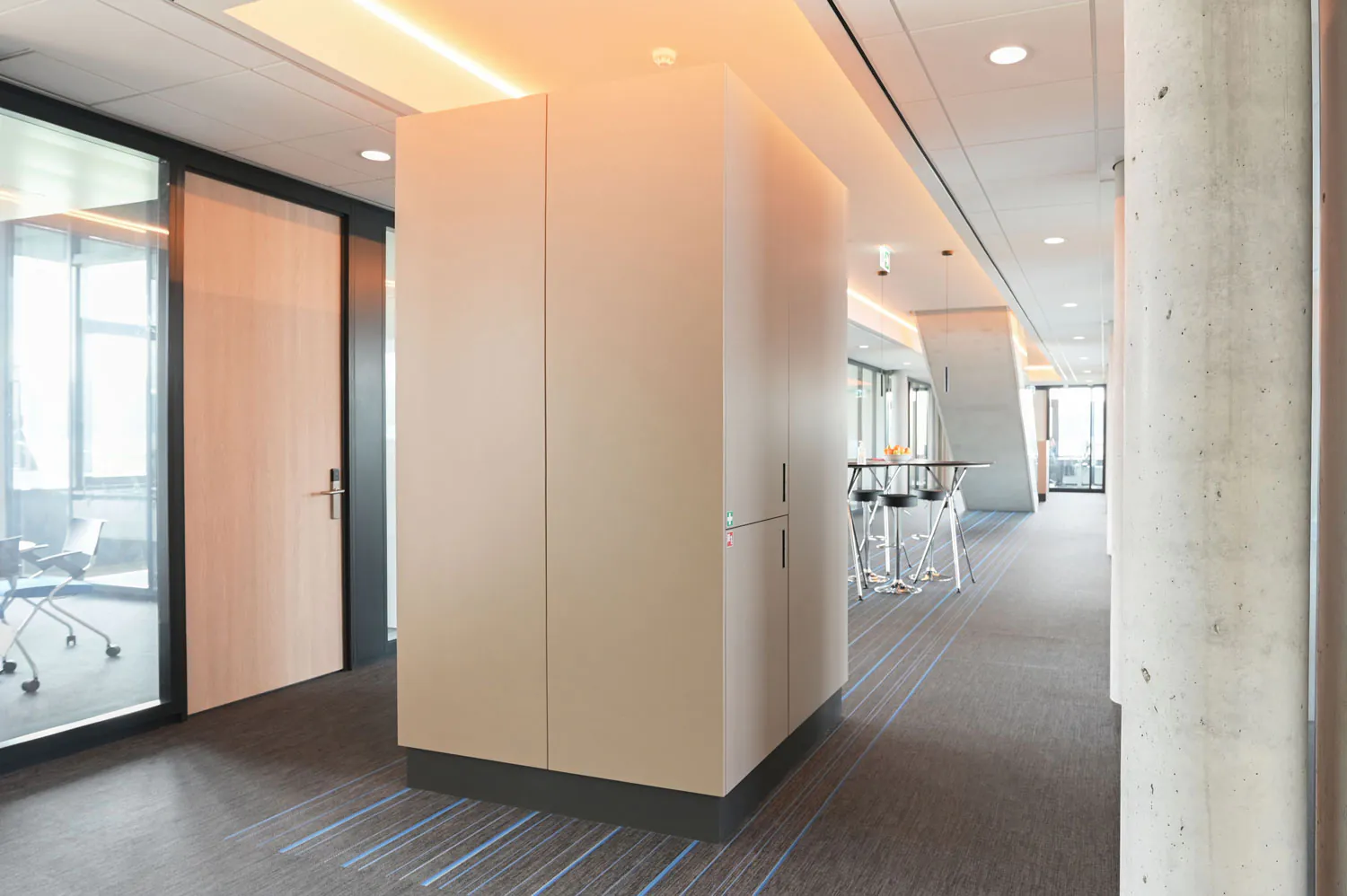 ABUS Kraansystemen is een vooraanstaande Europese halkranenbouwer. Voor het nieuwe kantoor met eigen opleidingscentrum in Nieuwegein heeft Hubbers interieurmakers het vaste meubilair gerealiseerd.